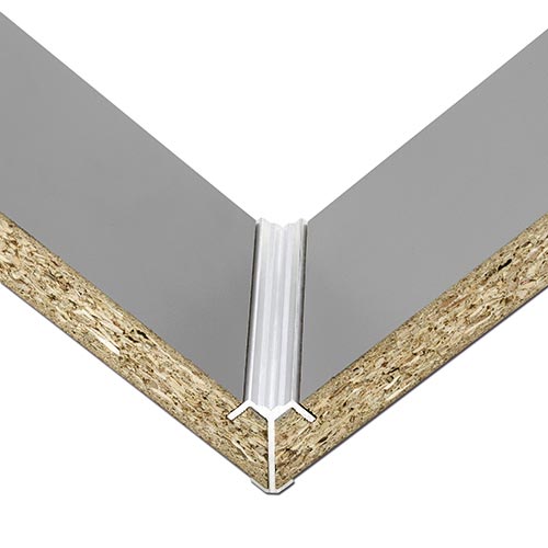 Eckverbinder sorgen für gestalterische Highlights an klassischen Möbelfronten und schützen gleichzeitig die Gehrungskanten. Besonders belastbar ist der Eckverbinder Solid von Ostermann: Er bringt zwei Stege rechtwinkelig in die jeweilige Platte ein, so dass die Verbindung sehr stabil wird und besonders beansprucht werden kann.